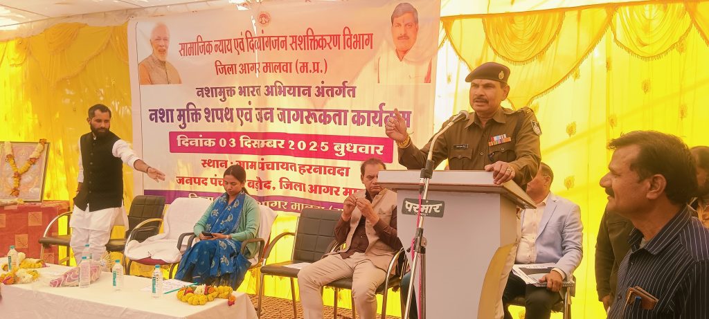 नशामुक्त भारत अभियान के अंतर्गत ग्राम हरनावदा में जनजागरूकता एवं शपथ कार्यक्रम आयोजित कलेक्टर एवं पुलिस अधीक्षक ने अफीम की खेती का निरीक्षण कर कानूनी प्रावधानों एवं नशामुक्ति के महत्व पर दिया संदेश
